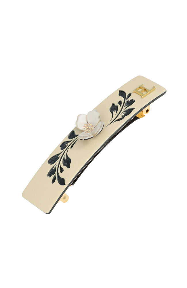 The France Luxe Valeria Barrette captures a romantic elegance rooted in artisan tradition. A delicate floral motif, set in luminous acetate, is complemented by a finely sculpted bloom and subtle crystal accents. Handcrafted in France, this piece lends a refined polish to everyday looks—an heirloom-inspired accessory made for modern moments.