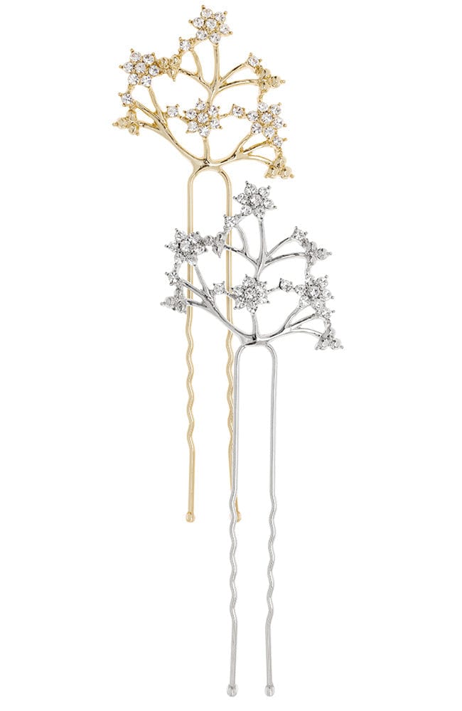 L. Erickson Elara Crystal Hair Pin is perfect for special occasions. Featuring flourishes of shimmering crystal flowers, the delicate chignon pin is a simple solution for a stunning style. With its graceful design and luxurious look, this crystal hair pin is an elegant addition to your ensemble.