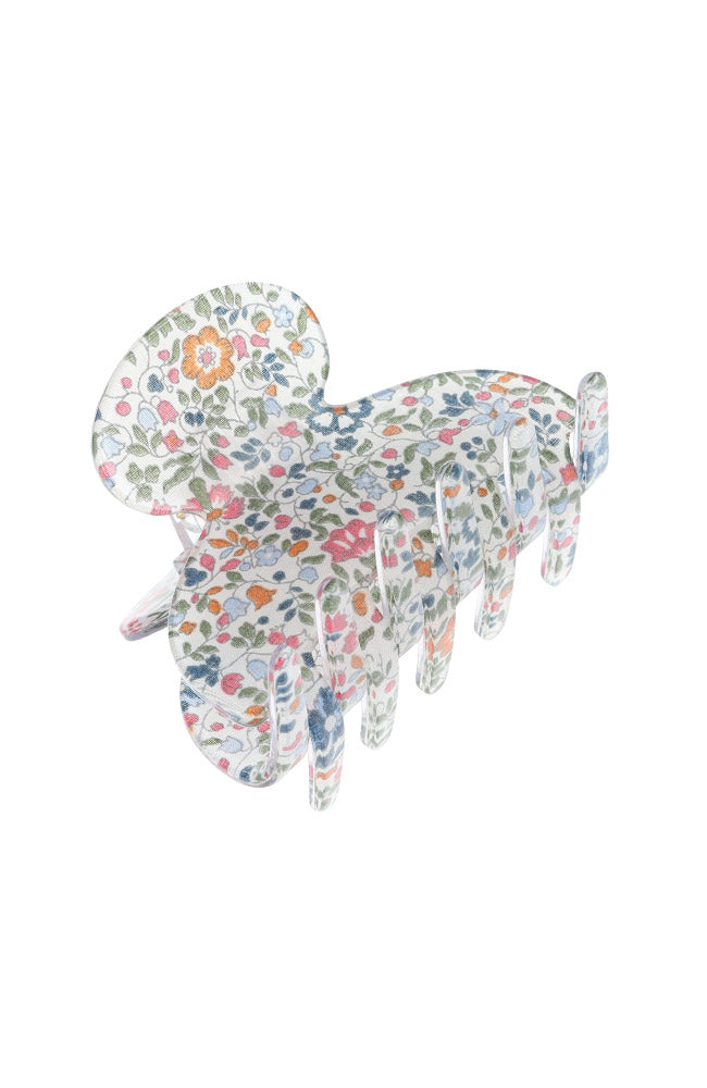 The France Luxe Kate Small Couture Claw Clip pairs delicate scale with enduring style. Crafted in France from polished cellulose acetate, its curved shape and strong spring closure offer secure hold for half-up styles or finer textures. Dressed in a soft floral print reminiscent of a Parisian garden in bloom, it lends a touch of quiet charm—turning a simple clip into a subtle statement of elegance.