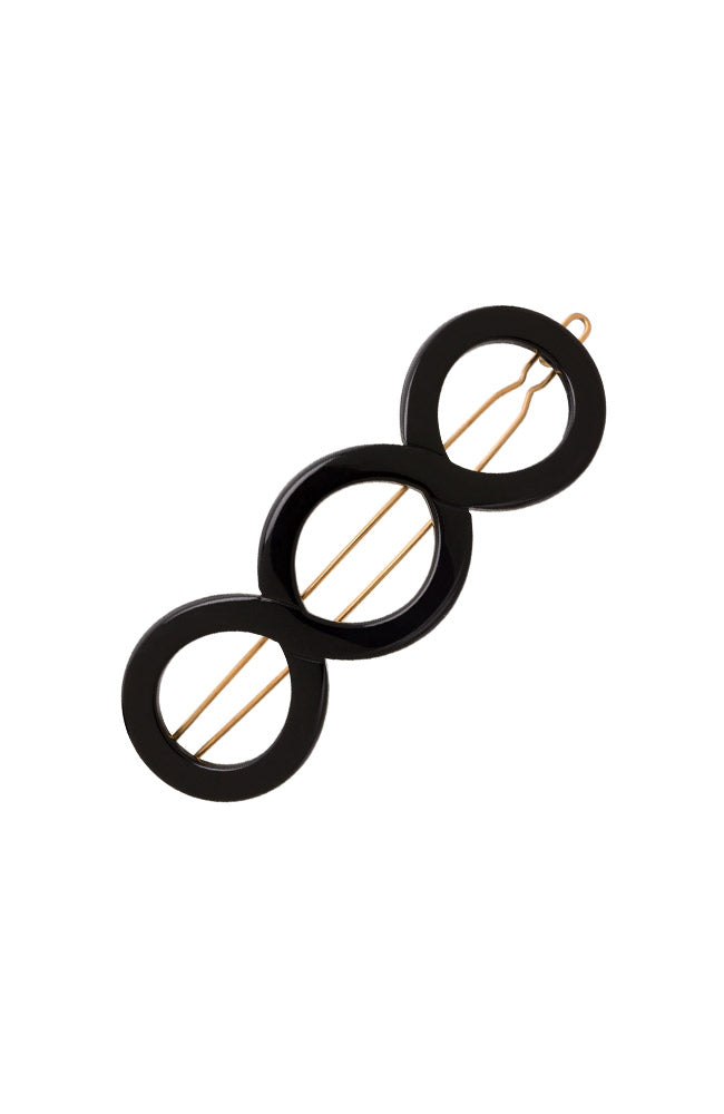 France Luxe Triple Circle Tige Boule Barrette - Classic is a sophisticated accent piece. Handmade in France and polished to a lustrous sheen, the barrette features a small tige boule clasp, making it an excellent choice for styling fine hair. With its elegant design and luxurious look, this eye-catching hair clip is a chic addition to your style.