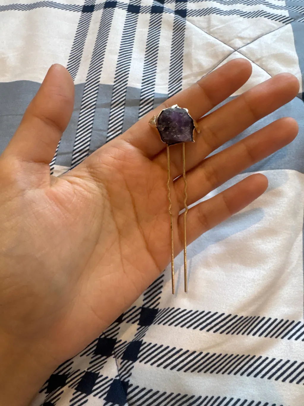 Amethyst is a semiprecious stone known for its healing and calming properties.