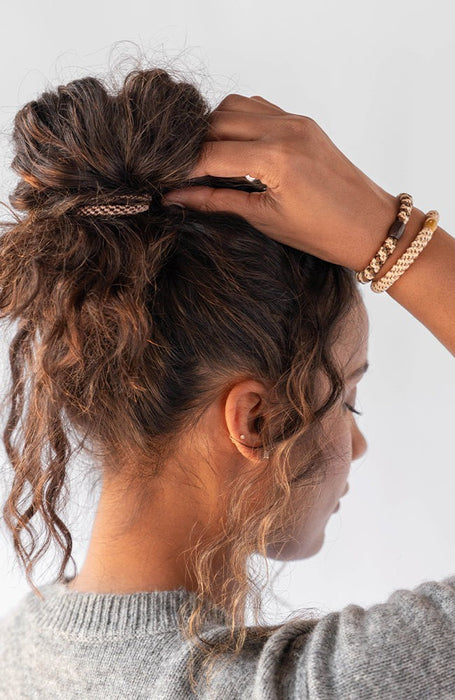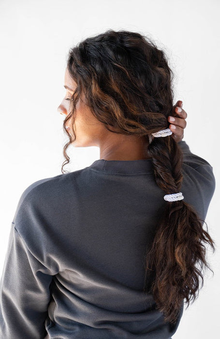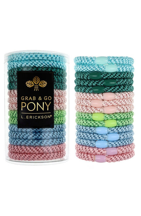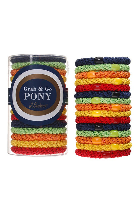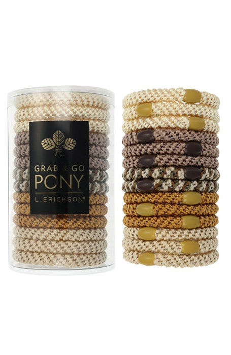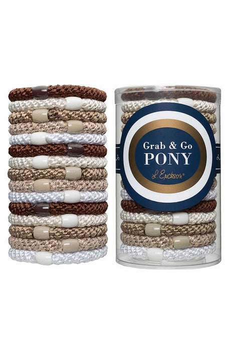 L. Erickson Grab & Go Ponytail Holders are must-have hair ties. Constructed of thick elastic accented with an ornamental oval bead, these hair bands are no crease and damage free. These hair ties are perfect for a simple ponytail and offer exceptional hold. Keep a few in your purse, desk, and car for a quick and comfortable on-the-go styling solution.