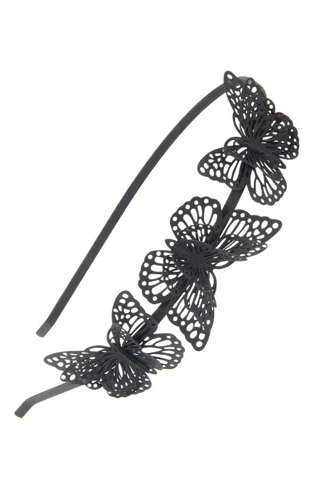 The L. Erickson Sylvie Butterfly Headband is a beautiful embellished metal headband. It features three butterflies. Adorn any hair type with this elegant, yet whimsical shimmering headband. Top your outfit off with this easy hair style, blooming with spring vibes.