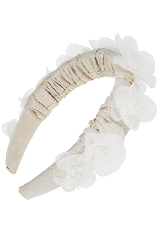 Covered in intricate lace flowers embellished with pearls, this headband exudes luxury and sophistication, making it perfect for women who appreciate timeless elegance. Whether you're wearing it as a statement piece or to keep your hair in place, the Valerian Headband adds a touch of glamour to any hairstyle.