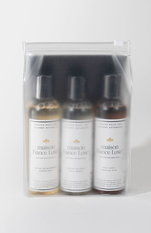 Indulge in the art of fine laundry care with the Maison France Luxe Luxe Laundry Trio, a travel-size sampler of our luxurious, artisan-crafted Fren...