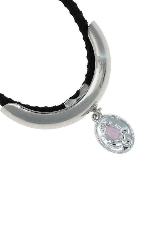 The L. Erickson Ravenna Pony Cuff adds a bold, modern accent to your ponytail. Featuring a sleek metallic finish and a dangling charm with an opale...