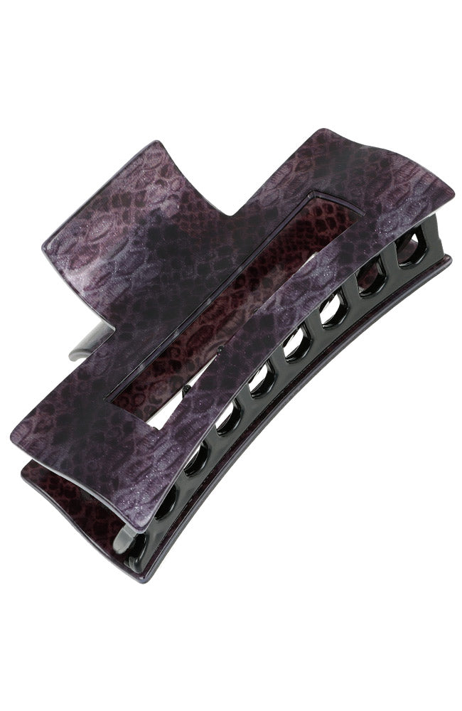 The France Luxe Aztec Large Cutout Rectangle Jaw Hair Clip is designed to handle thick hair with style and ease. Handmade in France, this large clip features a unique cutout design and a strong clasp for secure hold. At 4" long, it offers ample space for managing voluminous hair while adding a chic touch to your look. Made from durable cellulose acetate, it provides both functionality and elegance. Perfect for creating sophisticated updos or simply keeping your hair out of your face, the France Luxe Aztec Large Cutout Rectangle Jaw Hair Clip is a versatile accessory for any occasion.