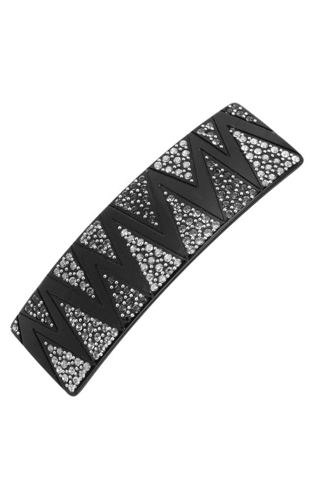 France Luxe Giza Barrette is a luxurious statement piece. Handcrafted in France and adorned with shimmering crystals and studs, the barrette is an excellent choice for a stunning style. Add a glamorous touch to your evening ensemble with this glistening barrette.