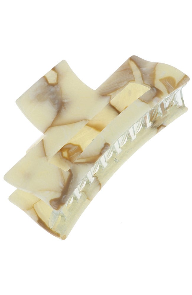 The France Luxe Large Cutout Rectangle Jaw Clip, Carrara is an elegant and stylish Jaw, ideal for thick hair. The Large Cutout Rectangle Jaw Jaw is a quick and easy choice to sweep back your hair and enjoy a comfortable, all-day hold. Add a sophisticated touch to your outfit with this Large Cutout Rectangle Jaw for an easy hair style. Elevate your look with this lovely Large Cutout Rectangle Jaw. Handmade in France and polished for a beautiful smooth finish. This hair clip features strong, damage free teeth for securing your hair style.
