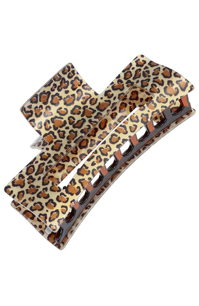 Large Cutout Rectangle Claw Clip - Golden Leopard
