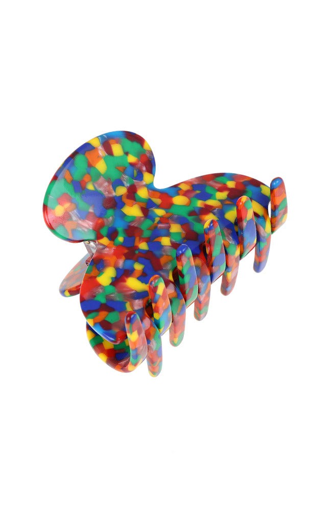 Turn heads with the playful France Luxe Small Couture Jaw in Circus. Bursting with vibrant, multicolored swirls, this eye-catching clip adds a pop of personality to any look. Handcrafted in France from premium cellulose acetate, the compact design is tailored for fine or thin hair, delivering a comfortable hold without slipping or pulling. Perfect for brightening up your basics or adding flair to an updo, this small French claw clip is your go-to for cheerful, functional style that brings a spark of joy to your day.