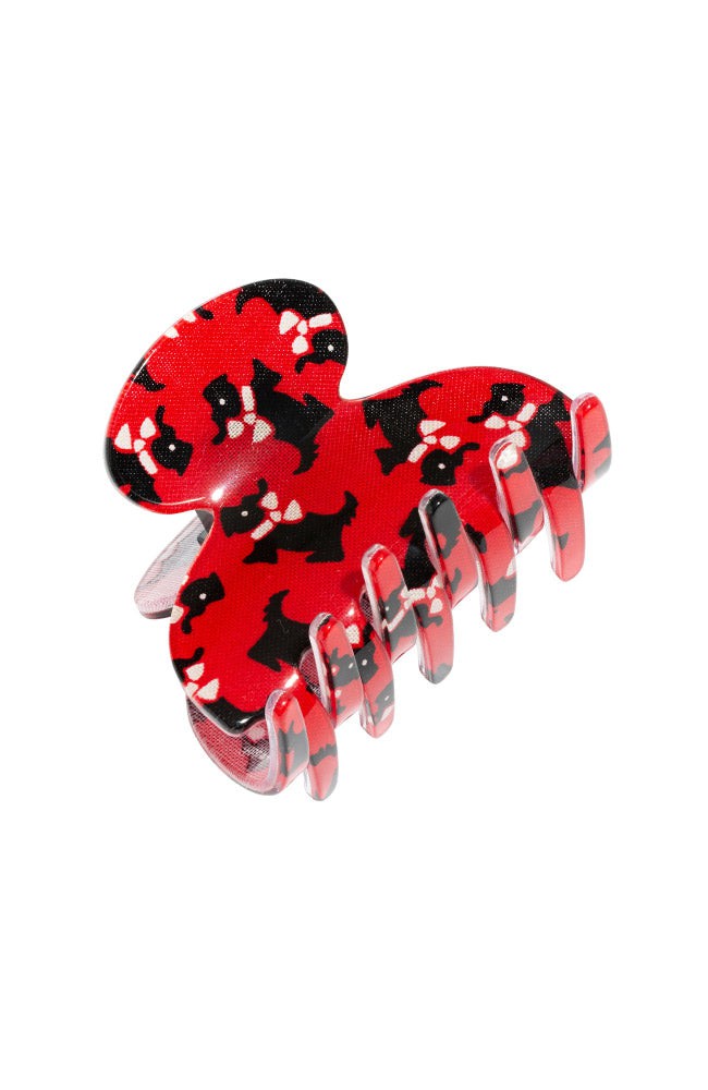 France Luxe Small Couture Jaw Hair Clip - Scottie Dog is versatile, easy to use hair clip. Handmade in France, this jaw features a fun scottie dog print and polished with a luxurious cellulose acetate. Its ideal size and chic print, this quality jaw clip is a must-have style staple.
