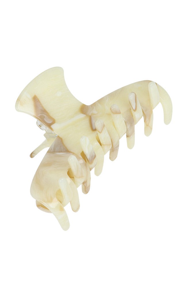 The France Luxe Throne Jaw, Carrara, a sleek and versatile claw hair clip designed to effortlessly enhance your hairstyle. Crafted with meticulous attention to detail and made in France, this jaw clip is both stylish and practical. Measuring 3 1/2" long, the Throne Jaw offers a comfortable grip for securing most hair types, making it suitable for everyday wear. Its Carrara design features an elegant marble pattern, adding a touch of sophistication to any look. The perfect blend of functionality and timeless elegance. Whether you're styling your hair for work or a special occasion, this hair clip will be a go-to accessory for achieving effortless sophistication.