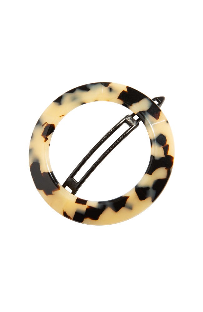 The France Luxe Eloise Round Cutout Tige Boule features our elegant, classic colors on a plastic hair clip. Handmade in France of luxurious quality acetate. This hair clip is light enough for fine hair, and strong enough for even the most textured hair. Add a touch of refined sophistication to your outfit with this easy hair style.