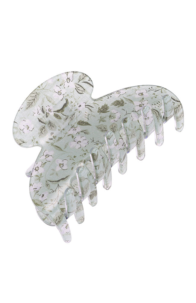 The France Luxe Couture Jaw Hair Clip in Victoria combines exquisite design and durability. Handcrafted from acetate and metal in France, this clip caters to most hair types. Measuring 1 1/2 inches in width and 3 1/2 inches in length, it presents the stunning Victoria print, featuring delicate leaves and florals. This resilient accessory not only offers a secure hold but also adds a touch of botanical charm to your hairstyle. Ideal for effortlessly elevating your look with its chic design and compatibility with various hair textures.