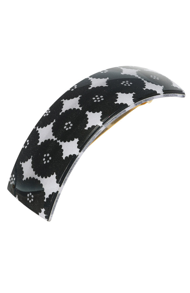 The France Luxe Rectangle Volume Barrette is tailored for thicker hair, an exquisite acetate and metal hair clip meticulously crafted in France. This 1 1/4-inch wide and 3 3/4-inch long barrette features the striking Dynamo print, showcasing a unique black and white pattern. Its unique design merges fashion and function, providing a secure hold while offering a stylish accent to your hairstyle. Ideal for thicker hair types, this barrette embodies the fusion of sophistication and practicality, perfect for effortlessly elevating your everyday and special occasion looks with its distinctive pattern and craftsmanship.