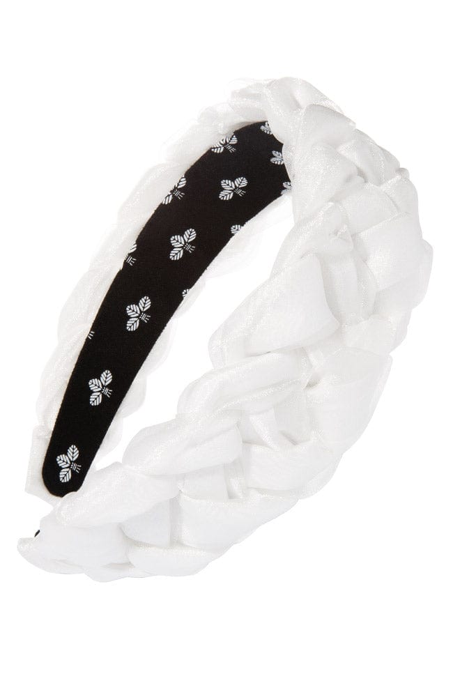 The L. Erickson Emma Headband is wide, braided headband. This headband is a comfortable hair accessory featuring layers of sheer fabric braided into a wide band. Ideal for most hair types. Add an edge to your outfit with this easy hair style.