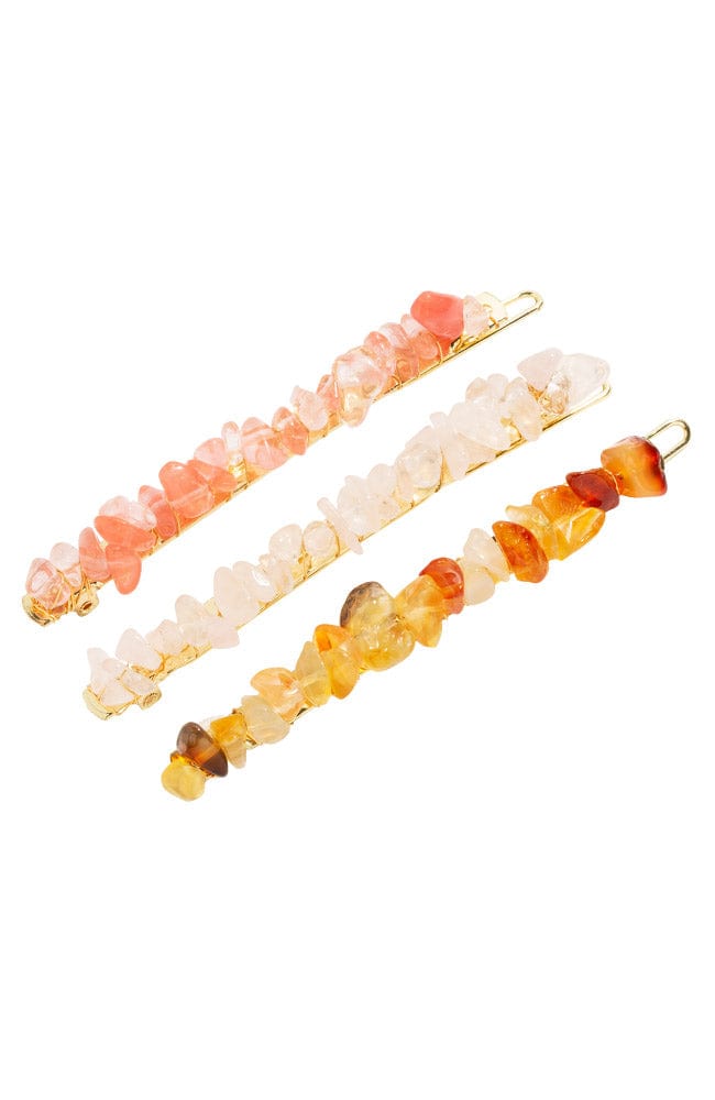 The L. Erickson Isla Tige Boule Hair Clips 3-Pack is a beachy, fun pack of bobby pins. These hair pins are covered in faux shells and features a strong gold tone clasp. This hair accessory is ideal for most hair types. Add a breezy boho style to your outfit with this easy hair style.