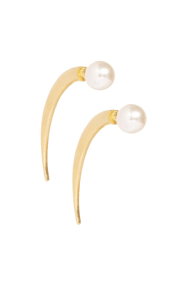 L. Erickson Large Spike Earrings are a chic accent piece. Made of plated brass and each decorated with a single simulated pearl, the earrings feature secure push-on closures for worry-free wear. With their modern design and graceful style, these elegant earrings are an eye-catching addition to your ensemble.