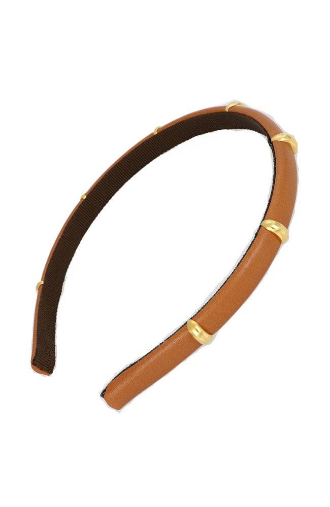 The L. Erickson Chiara Headband features a sleek, structured design wrapped in smooth faux leather and adorned with chic gold accents. With its slim silhouette and secure, comfortable fit, it brings a touch of understated luxury to any look. Whether paired with everyday outfits or elevated ensembles, this headband adds a refined, modern edge.