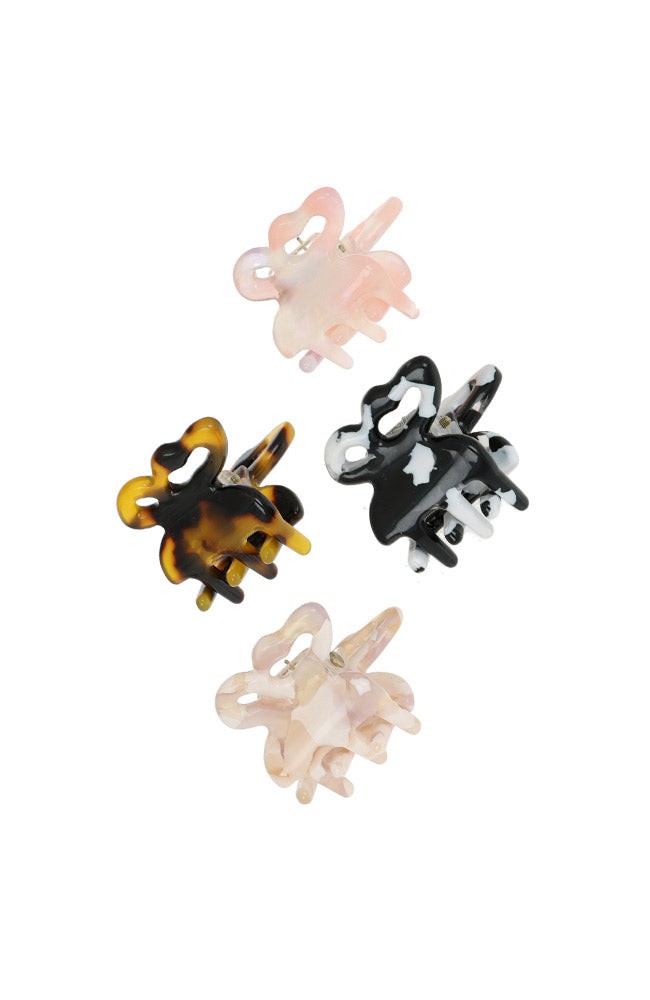The L. Erickson Nectar Jaw 4-Pack offers a delightful collection of mini butterfly hair clips, perfect for effortlessly styling your hair. Each clip is adorned with intricate butterfly designs, adding a whimsical touch to your hairstyle. With their petite size, these clips are suitable for most hair types and are ideal for creating charming and playful looks. Measuring just 3/4 inches long, these clips provide a secure hold while adding a touch of beauty to your hairdo. Wear them together or individually for a unique style every time.