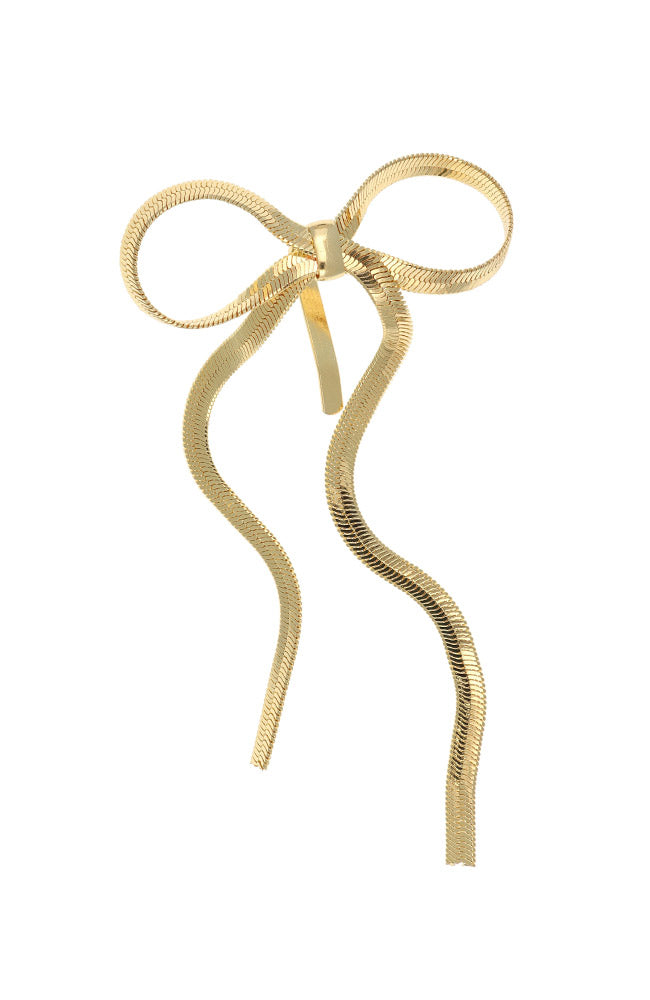 The L. Erickson Quincy Pony Hook is a modern interpretation of a timeless ribbon. Formed from textured metal in a soft, sweeping bow, it drapes with fluid lines that echo the ease of a tied ribbon. Designed to slip over a secured ponytail, it adds a polished finish with a playful twist—equal parts statement and sophistication.