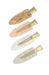 The L. Erickson Marley Pinch Clip 4-Pack offers versatile and easy-to-use hair clips designed for various hairstyles. Each clip features neutral tones and is mounted on a gold-tone pinch clip, adding a touch of elegance to your hair accessories collection. With their convenient size and design, these clips are suitable for most hair types, making them ideal for everyday wear or special occasions. Each clip measures 2 1/2 inches long, providing a secure and stylish way to keep your hair in place while adding a subtle flair to your look. Wear them together or individually for a unique style every time.