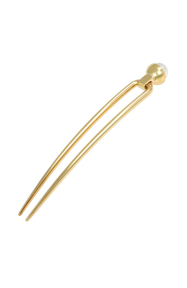 Add a touch of timeless elegance to your hairstyle with the L. Erickson Daphne Chignon hair pin. Crafted with two sturdy prongs, this exquisite accessory is specially designed to secure even the thickest of hair types with ease. Its lustrous gold finish and faux pearl embellishment create a sophisticated look that's perfect for any occasion.