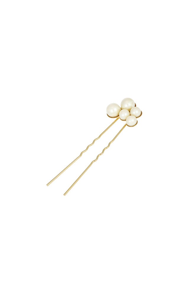 The Palace Pin by L. Erickson is a luxurious pearl hair pin designed to elevate any updo or bun with its elegant charm. Featuring a cluster of cream pearls on a gold-tone hair pin, this accessory adds a sophisticated touch to your hairstyle. Made in Germany, it combines high-quality craftsmanship with timeless beauty, suitable for most hair types.