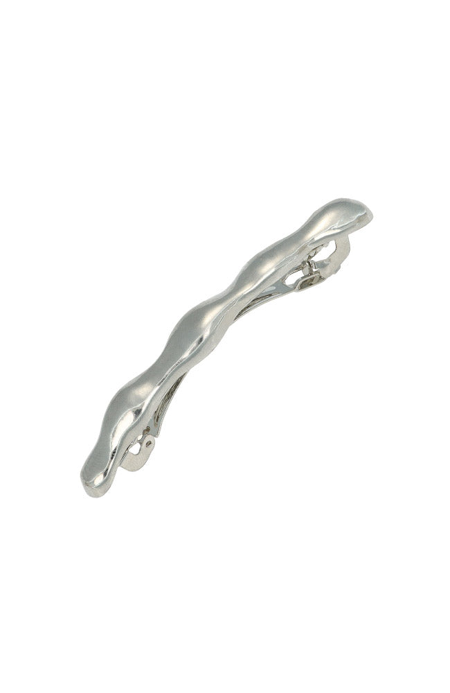 The L. Erickson Alpinea Barrette redefines simplicity with its fluid, sculptural design. Crafted from polished metal, this minimalist barrette makes a striking statement with its wavy form and high-gloss finish. Secured with a classic French barrette clasp, it’s ideal for holding back sections of hair or accenting sleek styles with modern, understated elegance.
