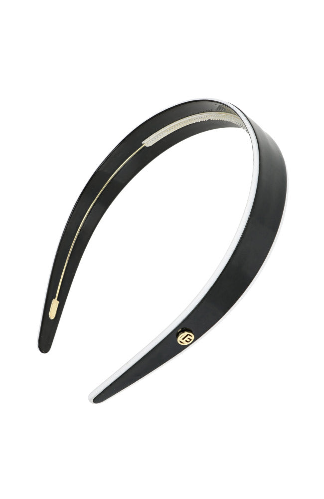 The L. Erickson Alessia Headband delivers timeless elegance with a modern edge. Designed with a slim yet sculptural silhouette, this high-gloss acetate headband features subtle grip detail and a sleek contrast trim. Accented with the brand’s signature gold-tone emblem, it’s the perfect finishing touch to elevate any look — from casual to formal, and everything in between.