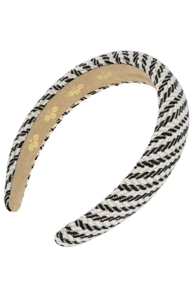 The L. Erickson Jacky Headband in Black & White offers a stylish and practical solution for effortless hair styling. This plaid print headband is wrapped in a chic black and white fabric with gold accents, adding a touch of sophistication to your look. Designed to accommodate most hair types, it features a wide padded band that ensures both comfort and a secure fit.
