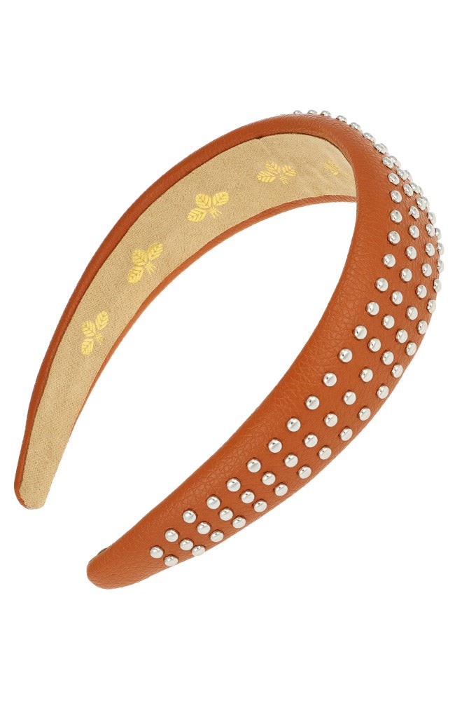 The L. Erickson Maura Headband is a bold, studded accessory that brings an edgy yet stylish touch to any hairstyle. Crafted from faux leather, this wide headband is adorned with round metal studs, offering a comfortable and chic way to style most hair types. Its easy-to-wear design makes it a go-to piece for adding personality and sophistication to your everyday outfits.