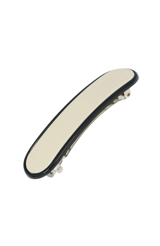 Transform your everyday look with the exquisite Black & Ivory Maybell Barrette from France Luxe. Handmade in France, this elegant accessory is perfect for styling a variety of hair types while ensuring comfort throughout the day. Its sophisticated design, featuring a stunning blend of black and ivory, adds a touch of French flair to any outfit. The barrette measures 1" wide and 3 1/2" long, making it an ideal choice for both casual and formal occasions. This versatile barrette is a must-have in your hair accessory collection. Crafted from high-quality cellulose acetate, the Maybell Barrette not only looks stylish but is also built to last. The strong French-style clasp ensures a secure hold, allowing you to create effortless hairstyles without worrying about slippage.
