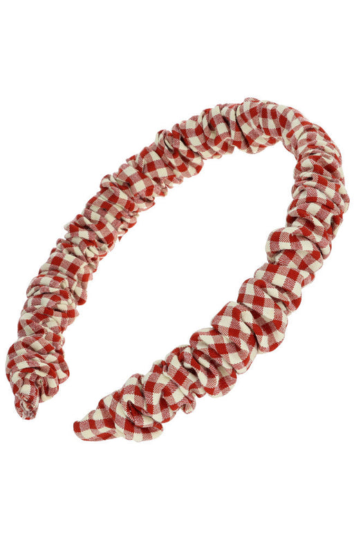 The L. Erickson Lillian Headband brings a charming twist to everyday styling. Wrapped in soft gingham fabric with a gathered, scrunchie-like finish...