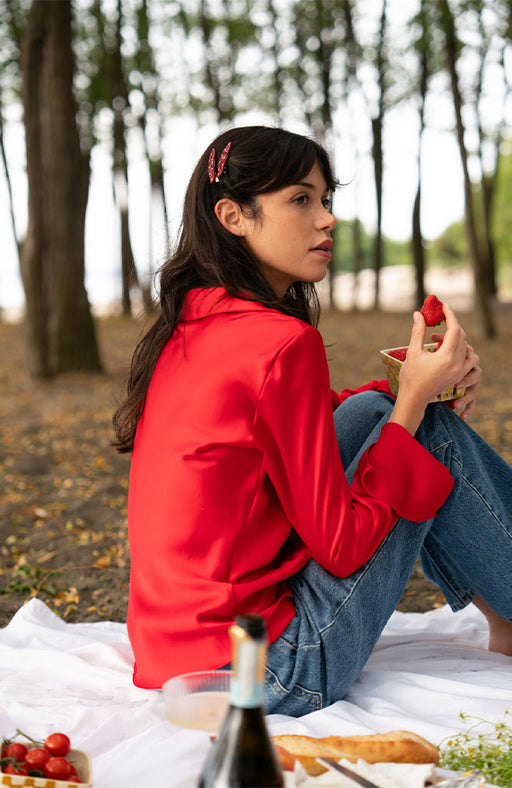 The France Luxe Claribel Large Claw Clip blends function with contrast-forward style. Designed with a smooth, high-gloss finish and bold color pair...
