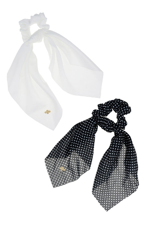 The L. Erickson Athens Scrunchie reimagines classic polka dots with a touch of playful elegance. Featuring airy scarf ties and soft, gathered fabri...