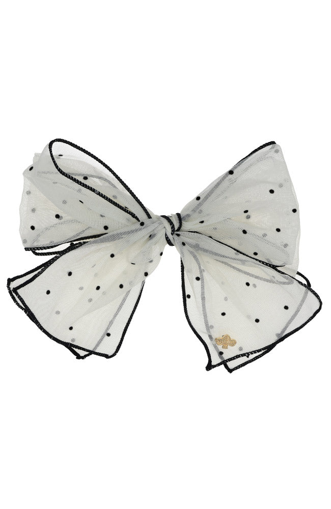 The L. Erickson Niki Bow Barrette blends softness and structure for a look that’s both charming and elevated. Made from delicate sheer fabric with playful polka dots and bold contrast edging, this bow adds instant polish to ponytails, half-ups, or tucked-back styles. Its lightweight feel and classic shape make it a versatile favorite for day or evening.