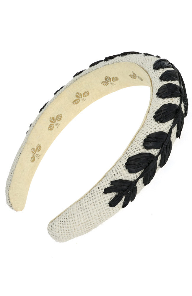The Elsie Headband by L. Erickson is a captivating blend of rustic charm and timeless elegance. This padded headband features a rustic jute weave adorned with black leaf motifs, adding a touch of natural beauty to your hairstyle. Designed for comfort and versatility, the Elsie Headband offers a secure and comfortable fit for most hair types. With a width of 1 1/4", it is an ideal accessory for both everyday wear and special occasions. Whether you're going out for the night or attending a garden party, this headband is sure to make a stylish statement while keeping your hair comfortably in place all day long.