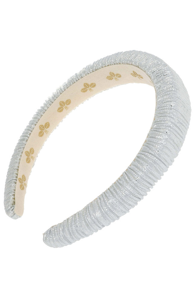 Elevate your look with the dazzling shimmer of the Izzy Headband by L. Erickson, a stunning accessory. Crafted from metallic silver fabric and featuring intricate ruching detail, this headband adds a touch of glamour to any ensemble. With its shimmering allure, the Izzy Headband effortlessly complements both casual and formal attire.