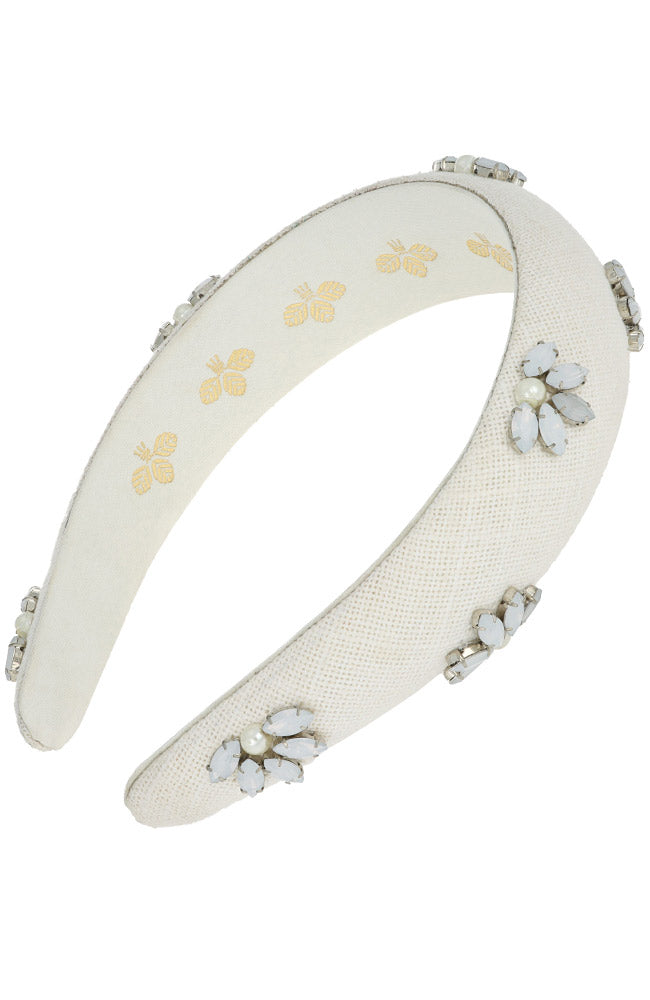 Make a sparkling statement with the L. Erickson Midsummer Headband. Designed for style and comfort, this wide headband is adorned with crystal and pearl flower embellishments, lending a touch of whimsy to any look. Perfect for styling most hair types, adding a chic finish to your ensemble. The wide band is wrapped in a neutral weave fabric, ideal for formal events, romantic evenings, or simply adding a bit of glamour to your everyday outfit. This headband strikes the perfect balance between elegance and practicality, taking your style to the next level with its luxurious detail and timeless design.