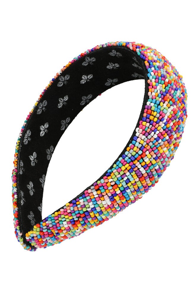 The L. Erickson Pismo Headband is a gorgeous headband. Handmade in India, this padded headband is covered in multicolor beads and features a thick padded band. This hair accessory is ideal for most hair types. Add a fun, colorful style to your outfit with this easy hair style.