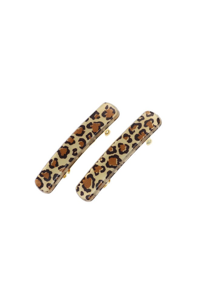 France Luxe Mini Rectangle Barrettes - Golden Leopard are an elegant option for your hair accessory collection. Meticulously handmade in France and expertly polished, these small barrettes provide a more secure hold than bobby pins, making them a highly advantageous hair styling solution. Show off your look with confidence knowing that these barrettes are designed to hold your hair securely in place.