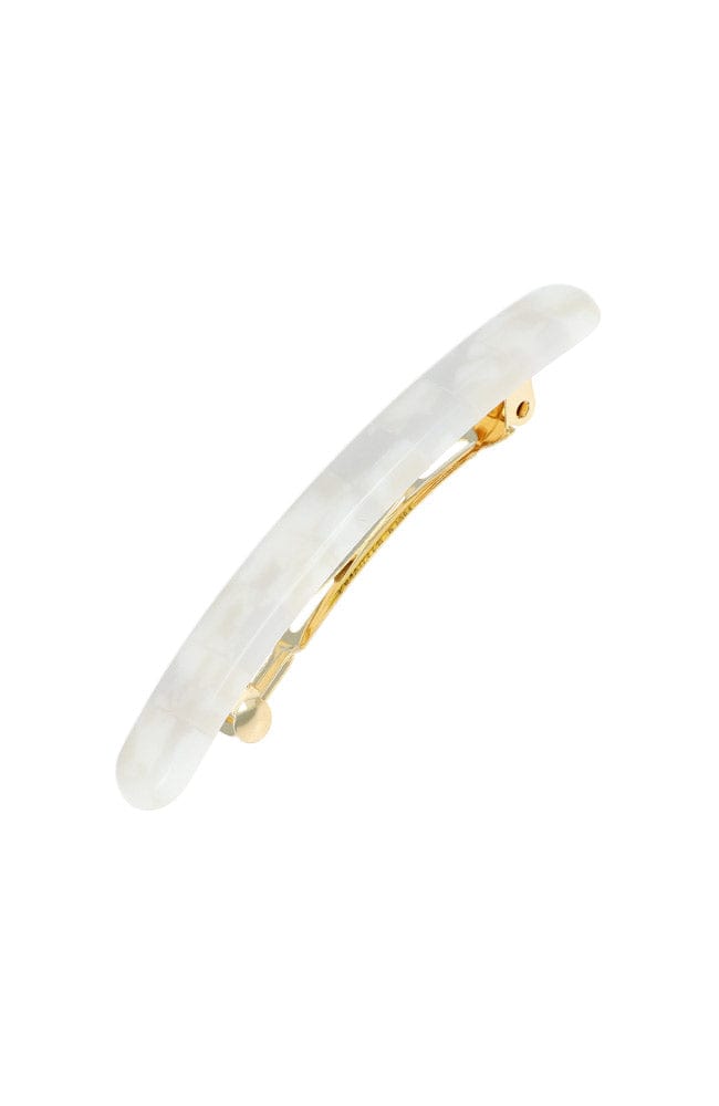Stay on top of your style game with the Porto Barrette - Coconut Milk. This small barrette offers a sophisticated and elegant design, making it easy to craft beautiful hair styles in no time. Perfect for your wardrobe!