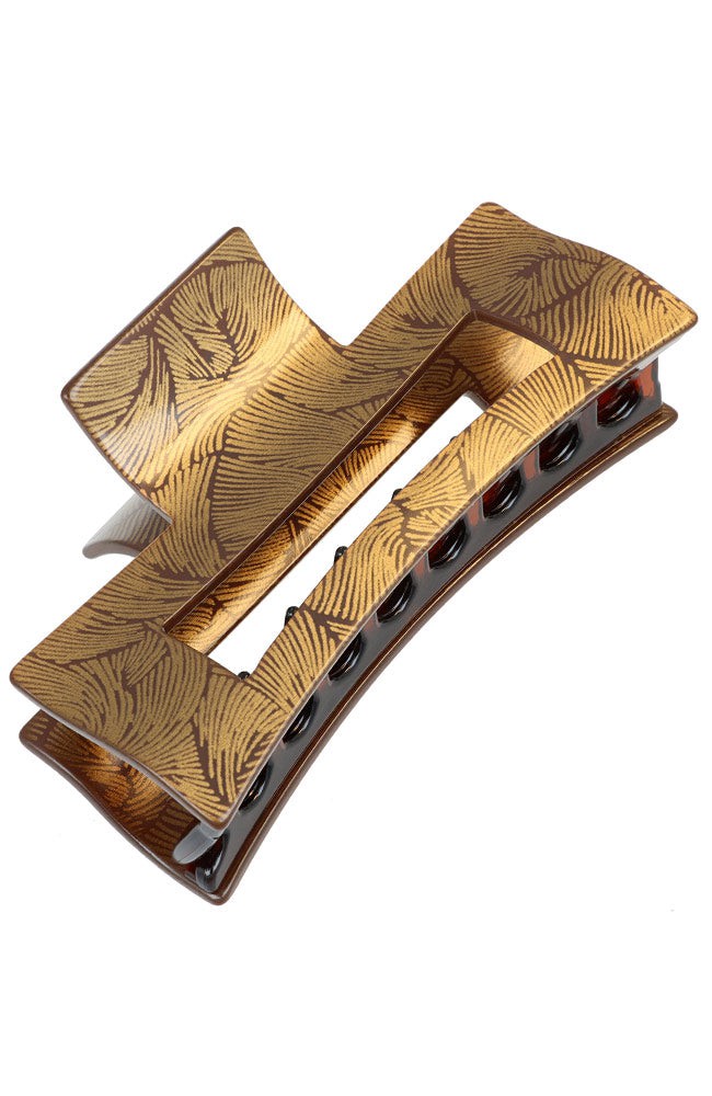 Large Rectangle Cutout Claw Clip - Gold Fern