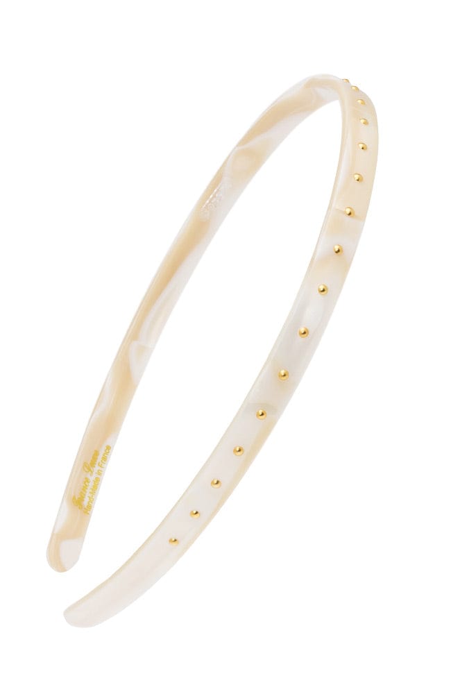 France Luxe Studded 1/4" Ultracomfort Headband is a chic accent piece. Handcrafted in France and polished to perfection, the brass studded headband will sweep back your hair with elegant ease. Add an edgy touch to your style with this stunning headband.