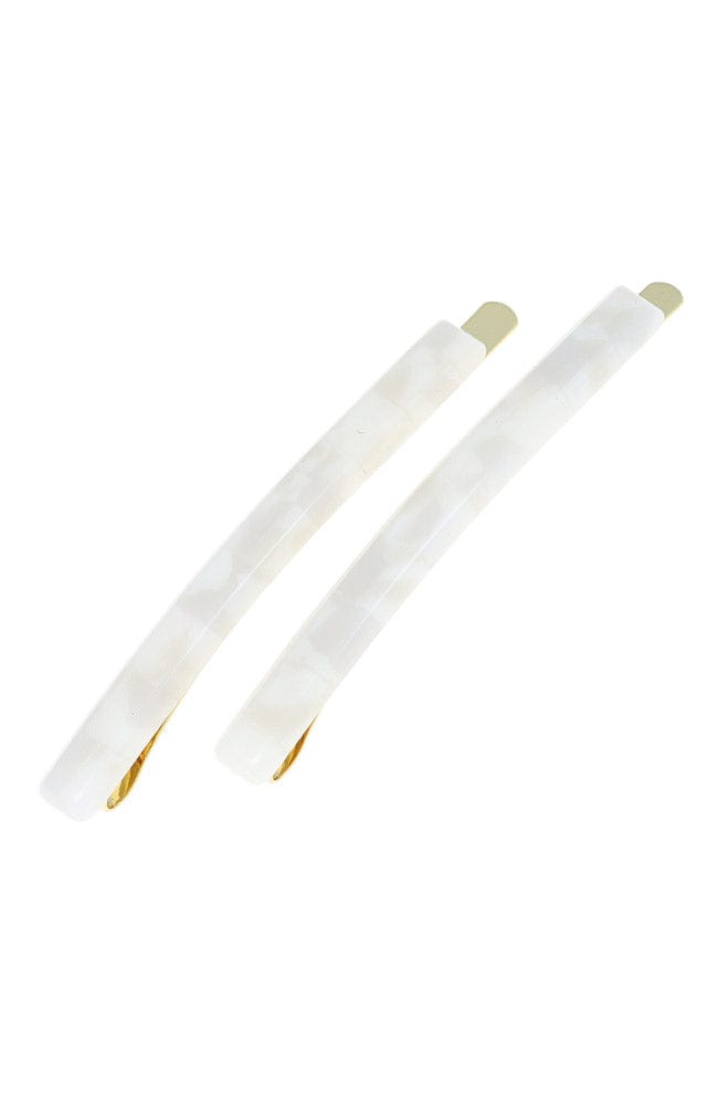 The France Luxe Bobby Pin Pair on Gold Wire - Coconut Milk is a versatile pair of decorative bobby pins to add to your daily ensemble. These hair pins are a quick and easy choice to sweep back your hair and enjoy a comfortable, all-day hold. Add a sophisticated look to your outfit elevating your look with these lovely bobby pins. Handmade in France and polished to a lustrous sheen. These bobby pins feature beautiful white acetate on a gold tone bobby pin.