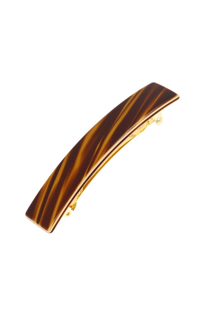 The Classic Rectangle Barrette - Tiger is a stylish striped hair clip. Handmade in France and polished to a glossy finish, this clip uses a traditional French-style barrette clasp, a simple solution for a sophisticated style. With its versatile size and stunning design, this chic hair clip is an eye-catching addition to any ensemble.