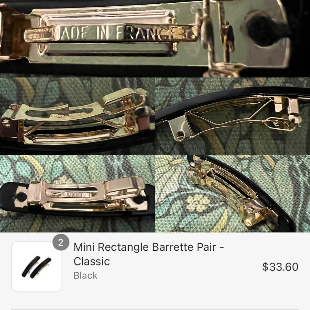 France Luxe Mini Rectangle Barrettes are a chic addition to your collection. Handcrafted in France and polished to perfection, the dainty barrettes offer more holding power than traditional bobby pins, making them an exceptionally versatile styling solution. Pull back your hair for a lovely look with this beautiful barrette set.